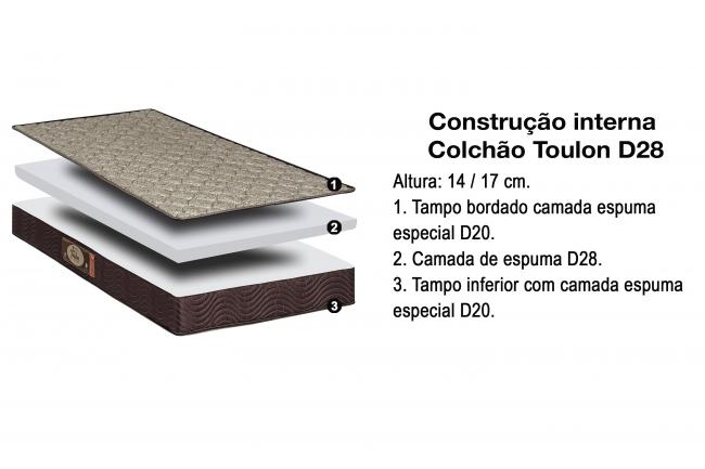 Revestido com tecido em fios especiais para oferecer um toque de conforto mais firme e suave, o Toulon D28 conta com acabamento nobre e exclusivo para noites tranquilas e tratamento antiácaro e antialérgico.